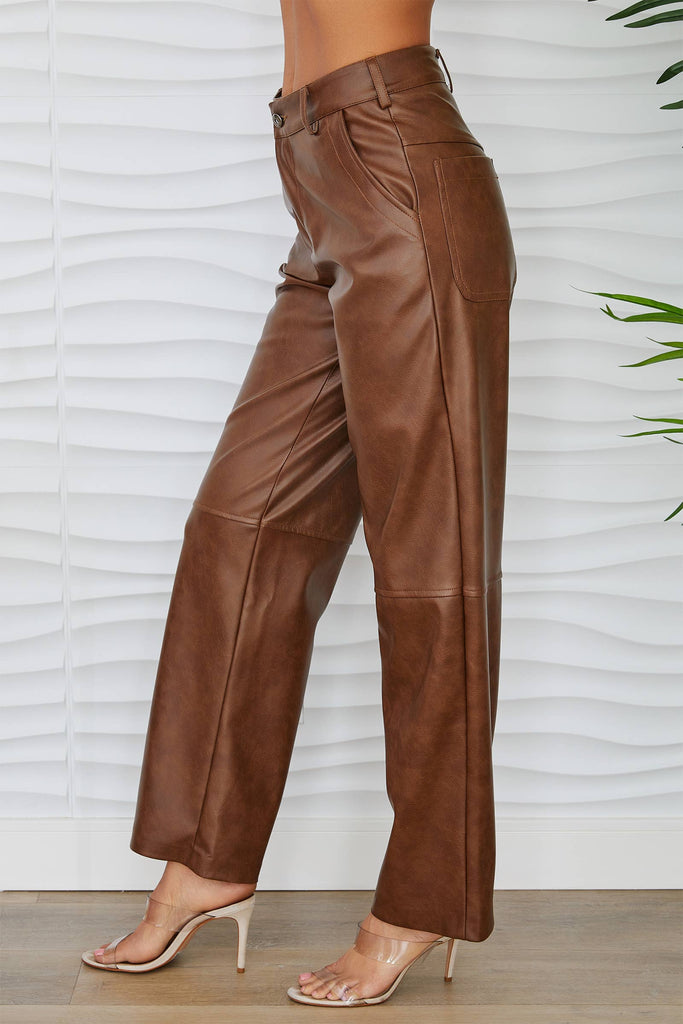 THIS PAIR OF FAUX LEATHER PANTS IS A STYLISH AND MODERN CHOICE. CRAFTED FROM HIGH-QUALITY, ECO-FRIENDLY FAUX LEATHER THAT LOOKS AND FEELS LIKE THE REAL DEAL, THESE PANTS OFFER A PERFECT FIT AND EXCEPTIONAL COMFORT FOR ANY OCCASION.