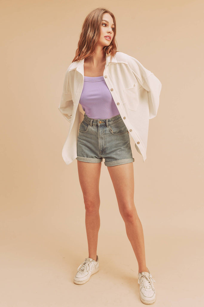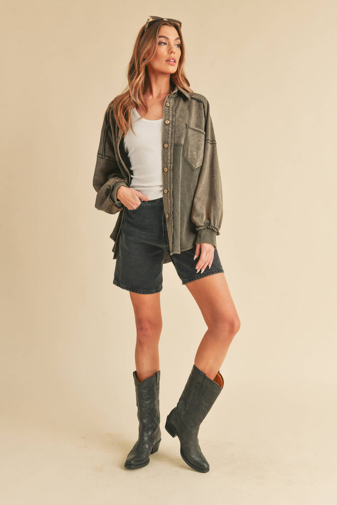 Judie jacket is the is the wardrobe must-have you didn`t know you needed! She`s mixed media beauty with the lived in look from the acid wash, perfect to pair with jeans or leggings.